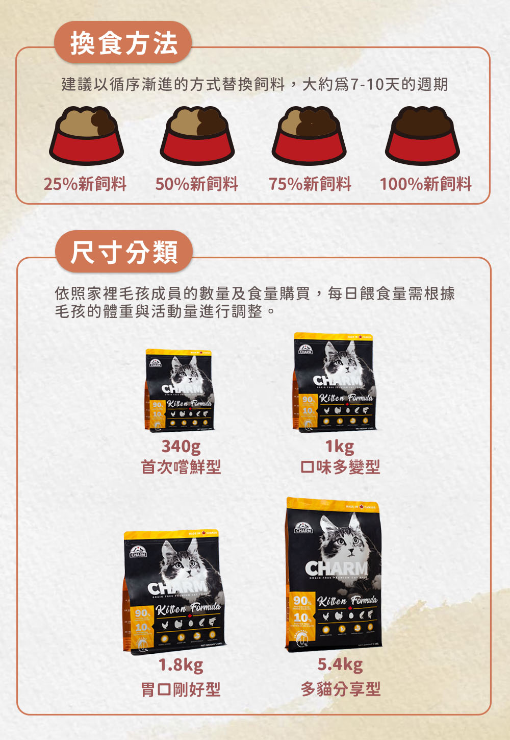 3.為避免寵物腸胃不適,請以7天的時間作為適應期,將新舊飼料逐漸遞增減的方式換糧
