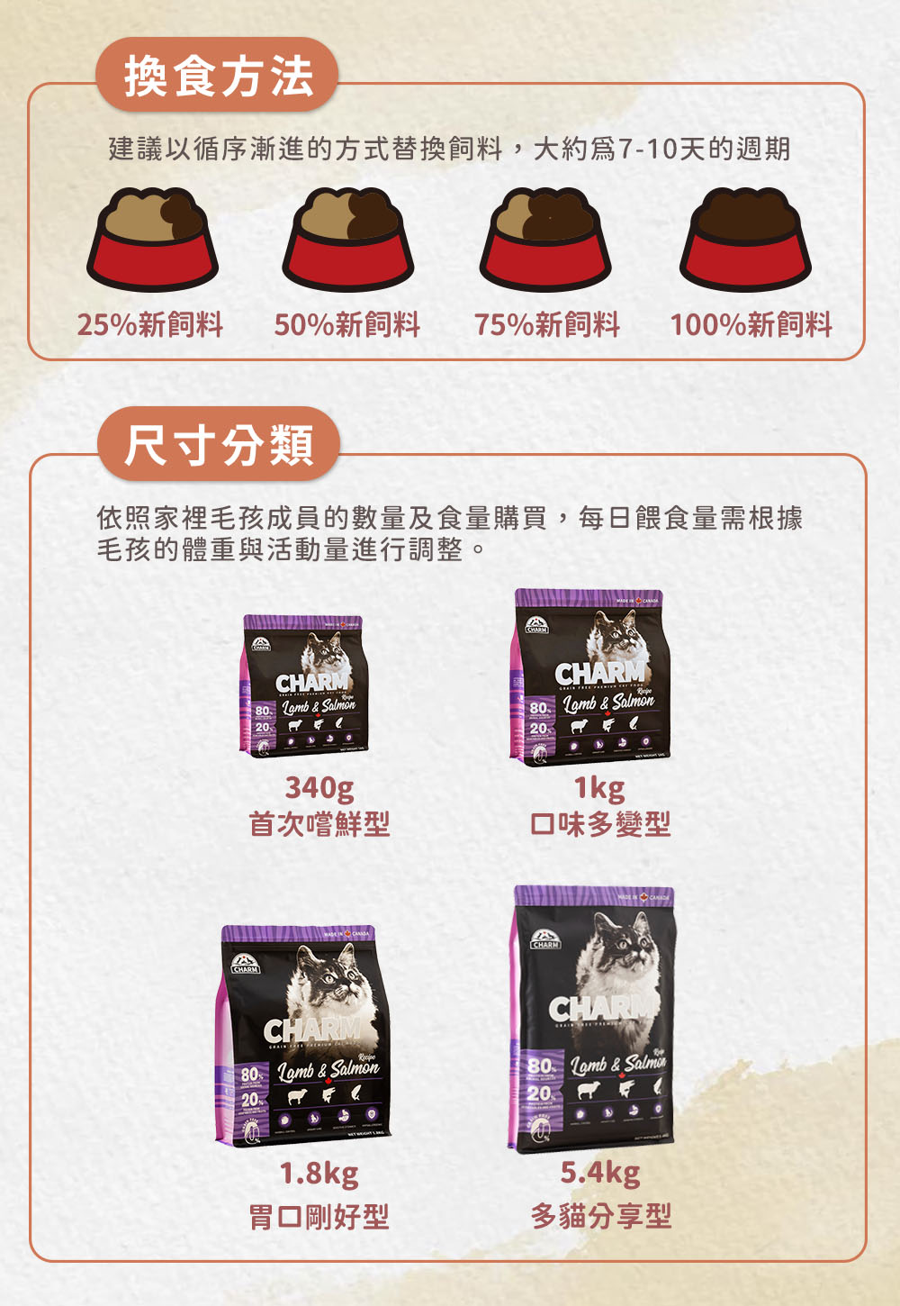 3.為避免寵物腸胃不適,請以7天的時間作為適應期,將新舊飼料逐漸遞增減的方式換糧